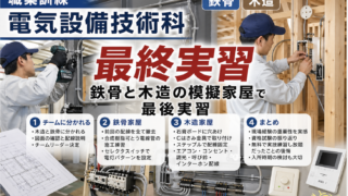 職業訓練「電気設備技術科」で学んだ金属管・合成樹脂管・可とう電線管施工、低圧電気取扱、リモコン配線の基礎から実習内容までを詳しく解説します。